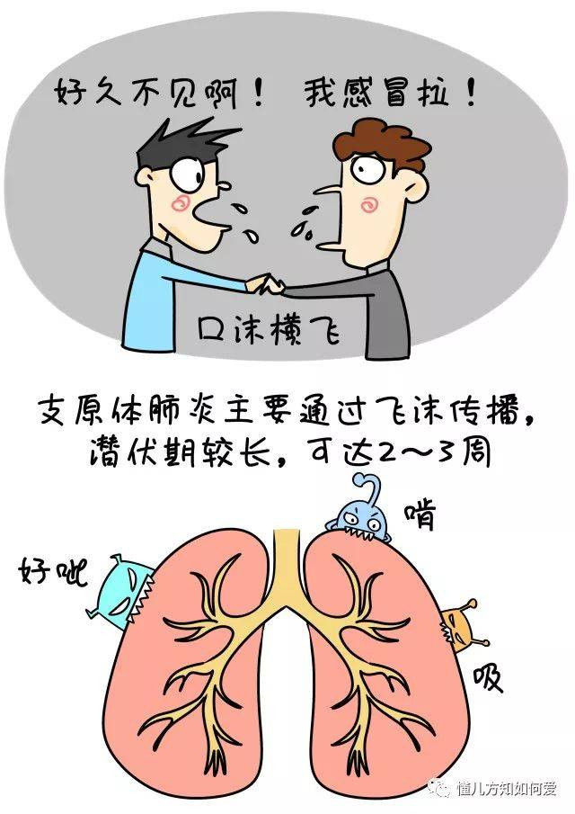 主要通过呼吸道飞沫传播,其潜伏期为1-3周,一年四季均可发生,秋冬季节高发。各年龄段人群普遍易感,儿童是高风险人群,尤其多见于5岁以上儿童。