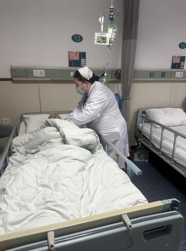 1月2日晚黄播收诊了一位便血的病人,因病人为临时就诊,家属没有带好生活物品,患者在凌晨出现便血时,导致家属出现慌乱无措。幸运的是,遇到了夜班护士林倩,她非常热心地将湿纸巾借给患者应急,并且知道患者病情比较严重,多次进行查房检查情况。有一次,患者家属给患者更换护理垫时疏忽导致挂瓶针头脱落,血液回流家属都没发现,幸好遇到了林倩护士,她及时发现并处理了情况。