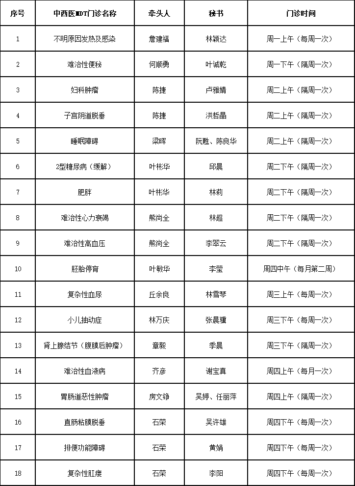 在中西医多学科联合门诊,中西医MDT团队将为每位患者提供最优化的中西医结合诊疗方案。每例中西医多学科联合门诊病例所涉及专业科室不少于3个,参与的专家人数不少于3名。