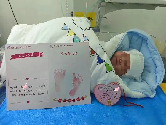 当肖某术后被推回病房时,肖某爱人看着平安的妻子,健康的孩子,眼含热泪,开心之情溢于言表。