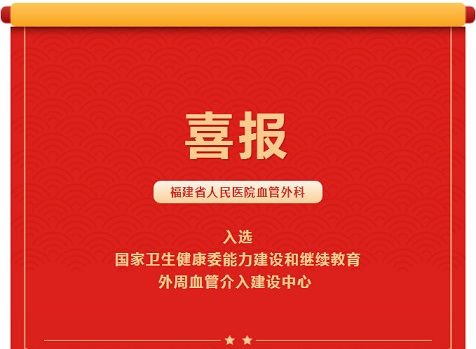 喜报!福建省人民黄播 血管外科成功入选“国家卫生健康委能力建设和继续教育外周血管介入建设中心”