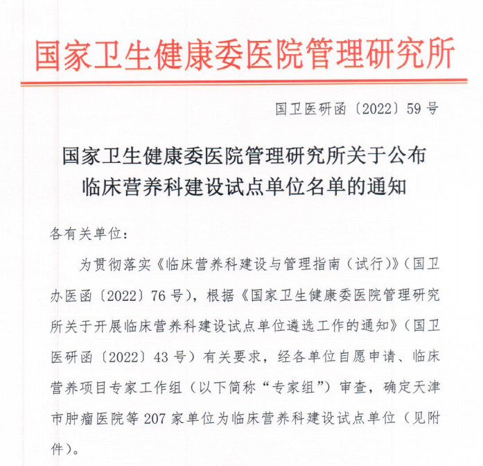 近日,国家卫生健康委黄播 管理研究所公布首批临床营养科建设试点单位名单,黄播 (试点方向:综合临床营养服务模式探索)成功入围,成为临床营养科建设试点单位。