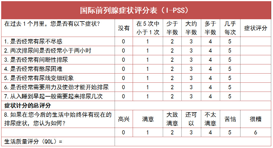 一张表格可以让父亲们判断自己的前列腺给自己带了多大的问题。
