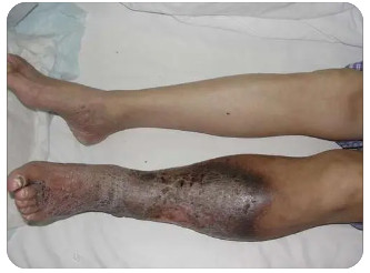 殊不知这可能是下肢深静脉血栓的典型表现,如果得不到及时有效的治疗,短时间内严重的肿胀可能导致肢体坏死,下肢深静脉血栓一旦脱落会引起肺动脉栓塞,表现为突发呼吸困难、心悸,在数分钟内因呼吸衰竭导致死亡;而后期则常遗留下肢深静脉阻塞或静脉瓣膜功能不全,导致下肢反复肿胀、出现经久不愈的溃疡,严重影响工作和生活。