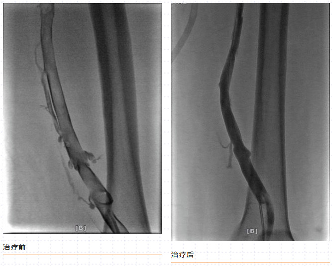 一经确诊,治疗越早越好,这也可避免晚期的严重后遗症。我们可以通过抗凝、溶栓、取栓、机械吸栓等办法综合处理血栓,即一站式完全微创的血管介入手术,仅通过1~2处“针眼”,便可清除血栓,术后第二天即可出院。