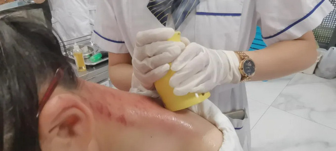 温通刮痧是在中医经络腧穴理论指导下,结合刮痧和艾灸的基本原理,将温通罐在体表一定部位反复刮动,使局部出现痧斑,再通过艾的温热和药力作用刺激经络、穴位或病痛部位,温通结合,补泻兼施,达到“通则不痛”的治疗目的。中医护理门诊的陈水凤主任护师介绍,刚才有一位肩周手臂疼痛的患者,之前酸痛,手臂抬不高,给予温通刮痧治疗后,当时患者的肩周就松了许多,手臂也可以向上抬了。