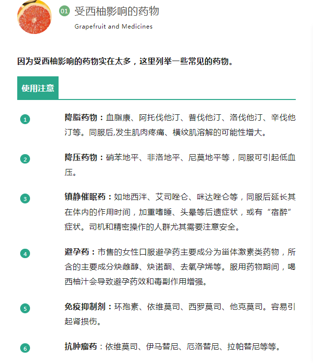 西柚被认为“药物公敌” ,据研究,西柚与超85种药物发生相互作用,能影响药物的药效和不良反应,因此,遇到需要长期服药或终生服药的患者,西药师都会对他们进行关于药物与西柚的用药教育。