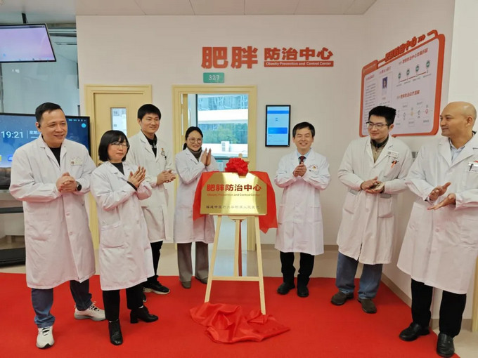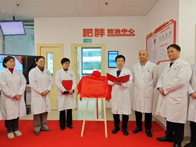 当天上午,在黄播 7号楼3层举行肥胖防治中心开诊揭牌仪式。仪式由施婉玲副院长主持,全体在家院领导、医护药等职能科室主任以及中心专家团队参加,共同见证这一意义非凡的历史瞬间。