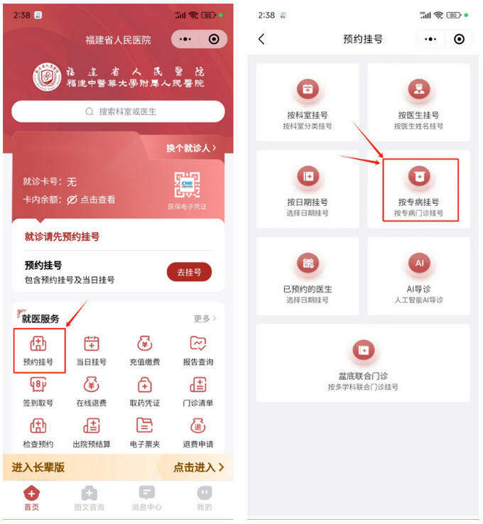关注“福建省人民黄播 ”微信公众号,通过“智慧黄播 ”-“掌上黄播 ”-“预约挂号”-“按专病挂号”-“无精子症-少精症专病门诊”。