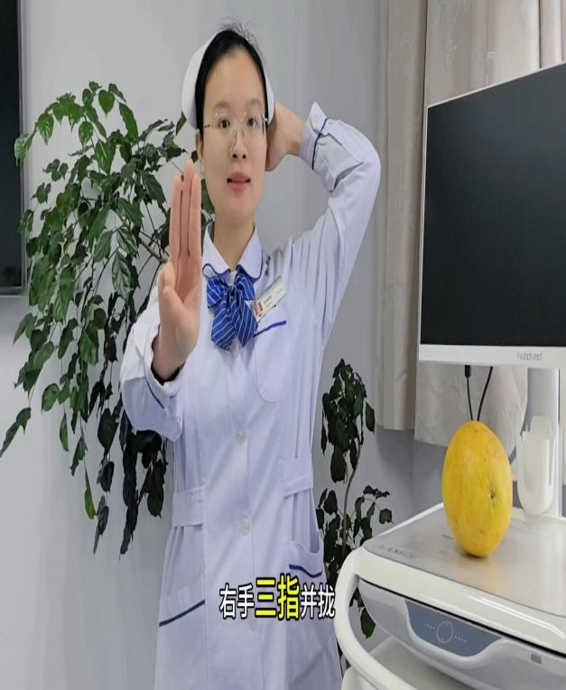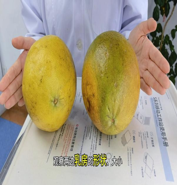 2、 举手:双手举过头顶,侧面观察乳房外观,留意乳头有无溢液、乳头是否回缩 。用食指和拇指轻轻提拉乳头并挤压,是否有溢液。