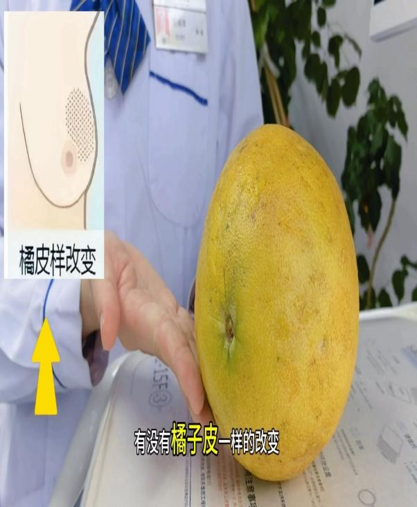 2、乳房皮肤异常:皮肤发红、发热、肿胀,局部凹陷或皱褶(像酒窝),皮肤变厚、毛孔粗大像橘子皮(“橘皮样变”)。