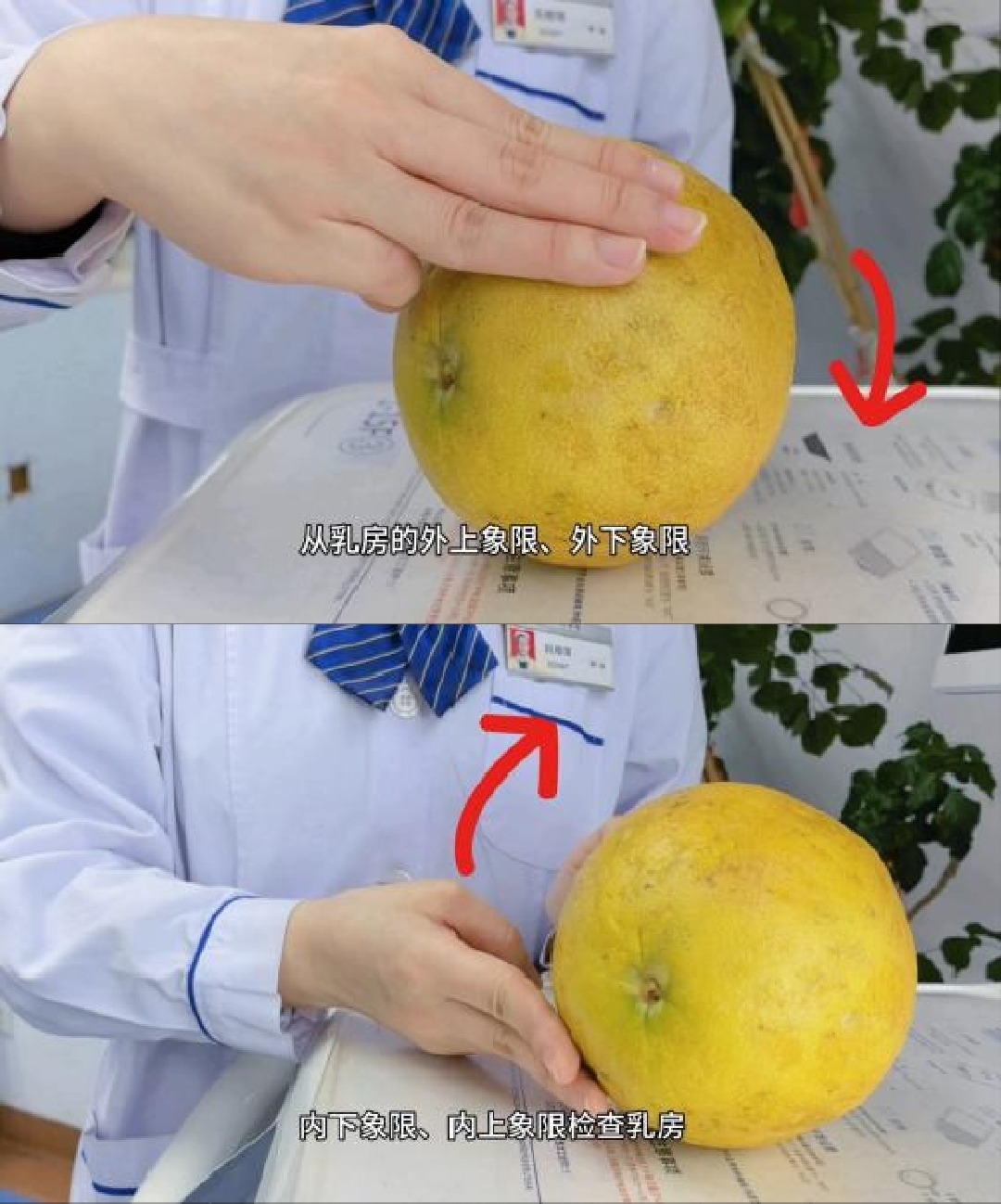 1、 画圈:四指并拢,在乳房表面画圈滑动,顺序外上→外下→内下→内上→乳头乳晕→腋窝,排查肿块。