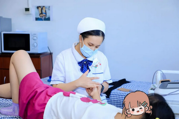 儿科护士肖笑然为患儿做核桃灸治疗假性近视